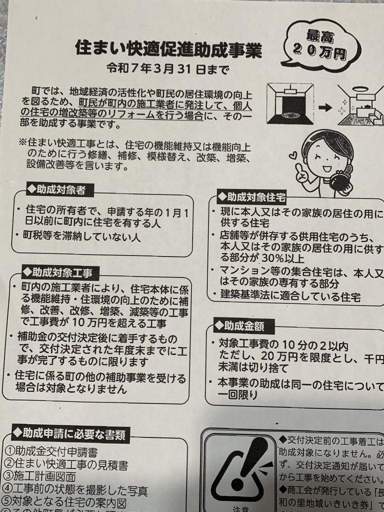 上限20万円の助成金。『すまいの快適促進助成事業』です