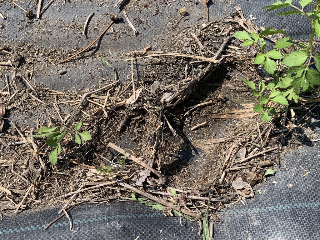 その石をどけると、鳥の巣の様に凹んでいるのが良く分かります。石の重みの
