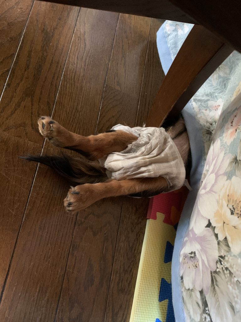 はじめはヒーターが効いたテーブル下に潜っていましたが
