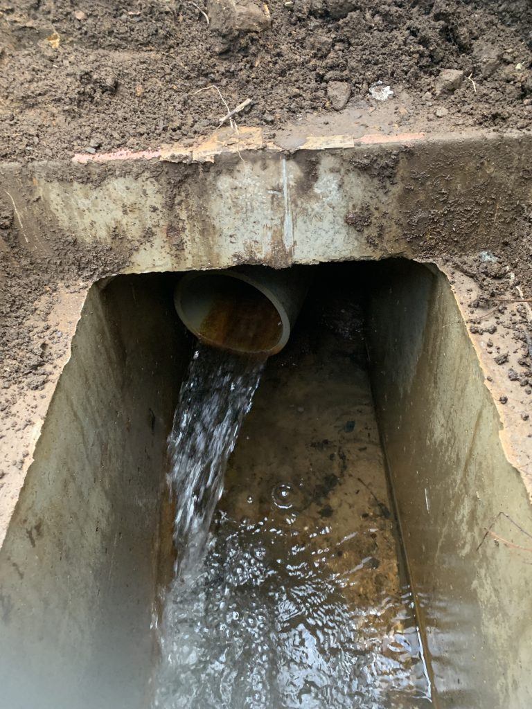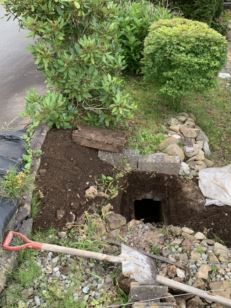 それでは出口部分から突っつけば?と思い調べてみるも側溝のふたが土で