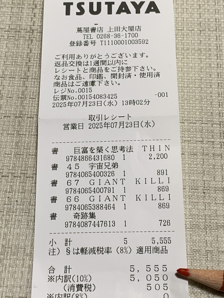巨富を築く思考法 をはじめジャイキリ、宇宙兄弟の