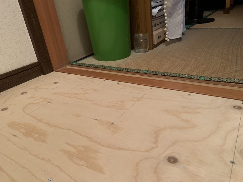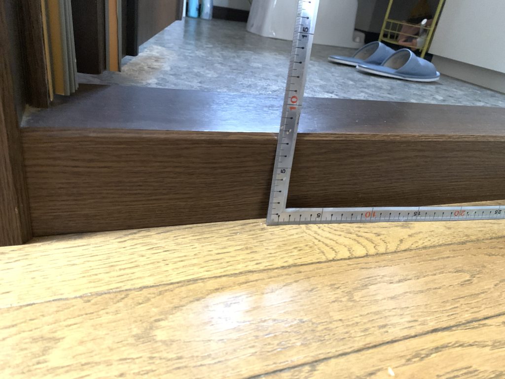 70ミリの框と50ミリほどの敷居の段差を解消。手すりを新たに設けて