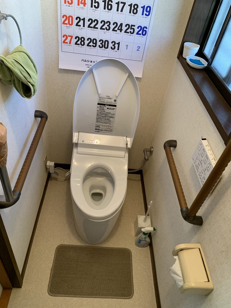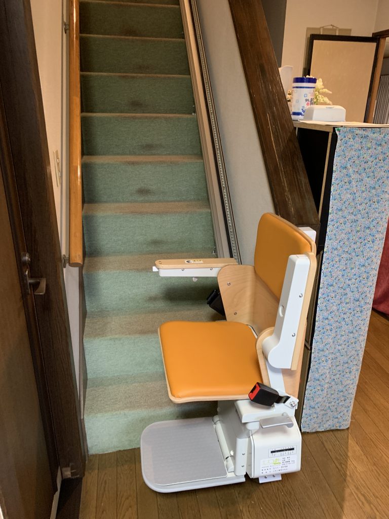 トイレ洗浄・フタの開閉を自動で行う便器に交換。階段の自動昇降機