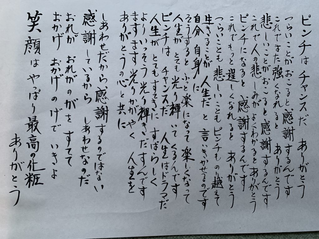 色んなお仕事を頂き、食事を頂いたり。お仕事の後にこんな色紙を頂き