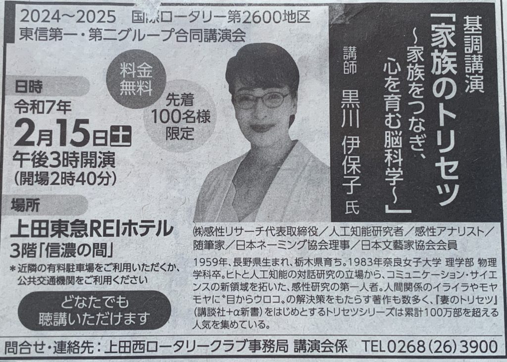 新聞の記事内に『黒川伊保子』さんの講演会を