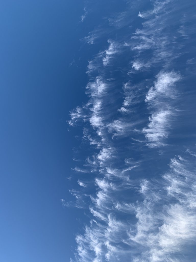 今朝バムちゃんと散歩中きれいな青空に流れる雲