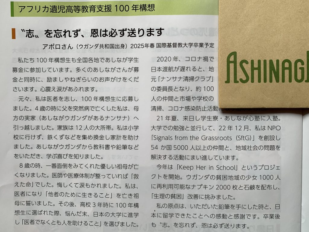 あしなが育英会様から機関紙が届きました。