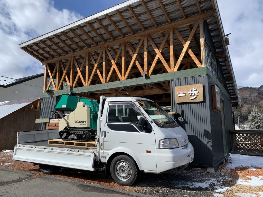 昨日新しいトラックで頼んでいたウッドチッパーという道具を