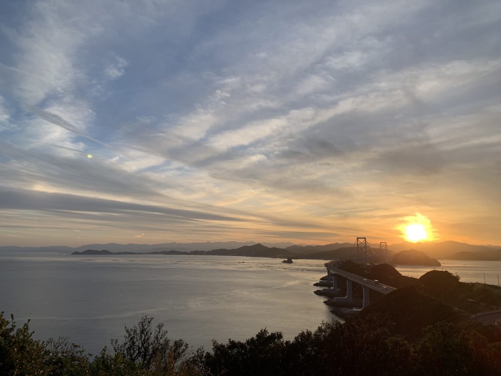 色んな仕事が増えて町に勢いが生まれます。 橋と鳴門海峡と夕日。